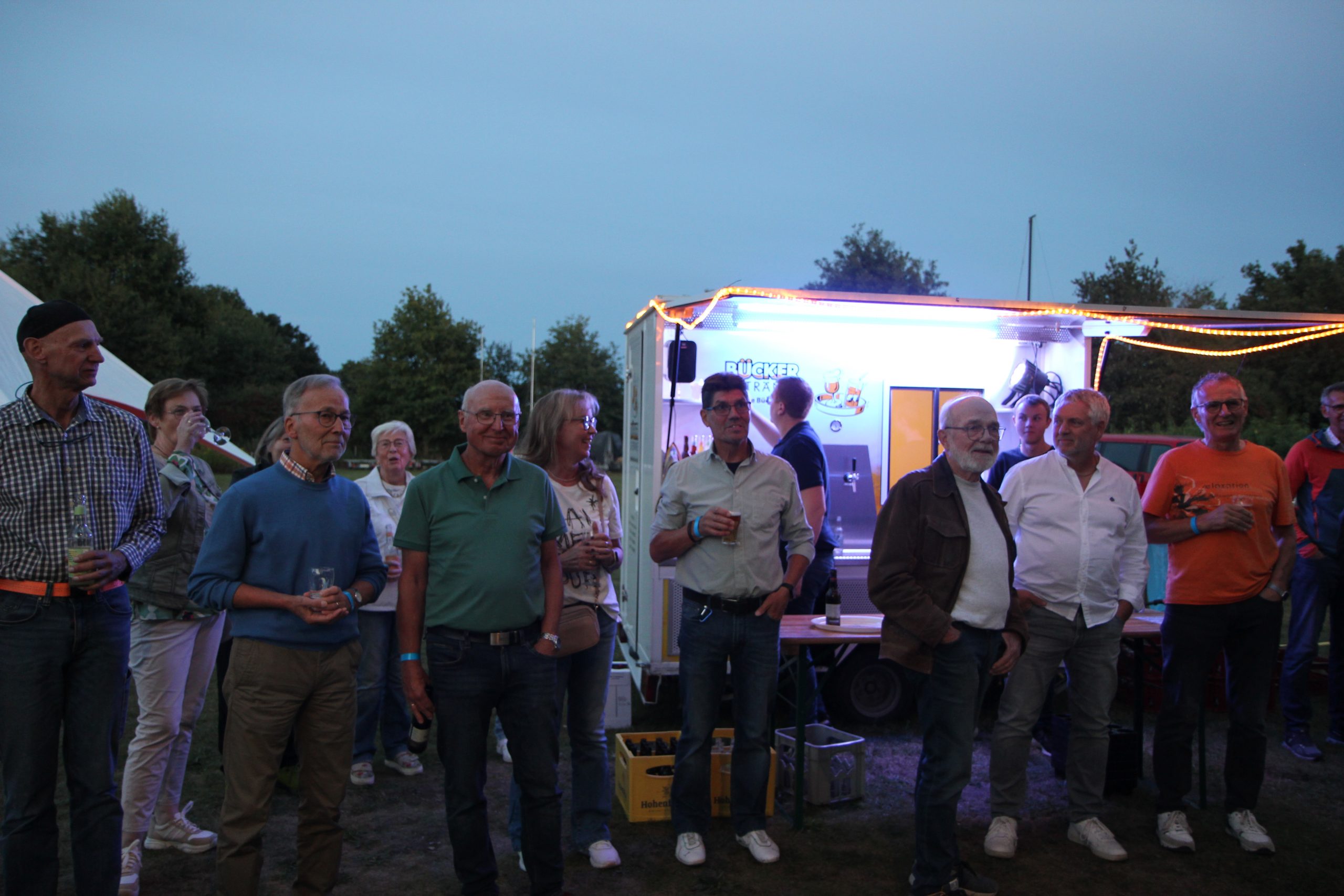 Jetzt war es soweit. Der SSC feierte seinen 40. Jahrestag nach der Gründung im Jahr 1985. Hierzu eingeladen hatte der Vorstand und dieser Einladung sind rund 130 Teilnehmer gefolgt. Geboten wurden leckere Grillspezialitäten, Getränke von der Theke und Musik vom DJ. Bei dem guten Spätsommerwetter spielte sich fast alles im Freien ab, bzw. auch unter dem Sternzelt, dass vom Zeltverleih Nolte zur Verfügung gestellt wurde. Besonders froh war Rainer Krause, dass er noch vier Gründungsmitglieder als Ehrengäste begrüßen konnte. Es waren Norbert Bartels, Siegfried Kleinhans, Norbert Schlephorst und Toni Bergkemper (die ersten drei sind auf dem unteren Bild zu sehen). Einen besonderen Dank sprach der 1. Vorsitzende der Bürgerstiftung aus, die durch Frau Irmgard Batels vertreten wurde. Die Stiftung hat den Verein immer wieder unterstützt. Zu später Stunde hielt der DJ die Gäste mit guter Musik auf der Tanzfläche. Alles in allem war es ein angenehm, gelungener Abend mit viel Gesprächsstoff aus den vergangenen vierzig Jahren.